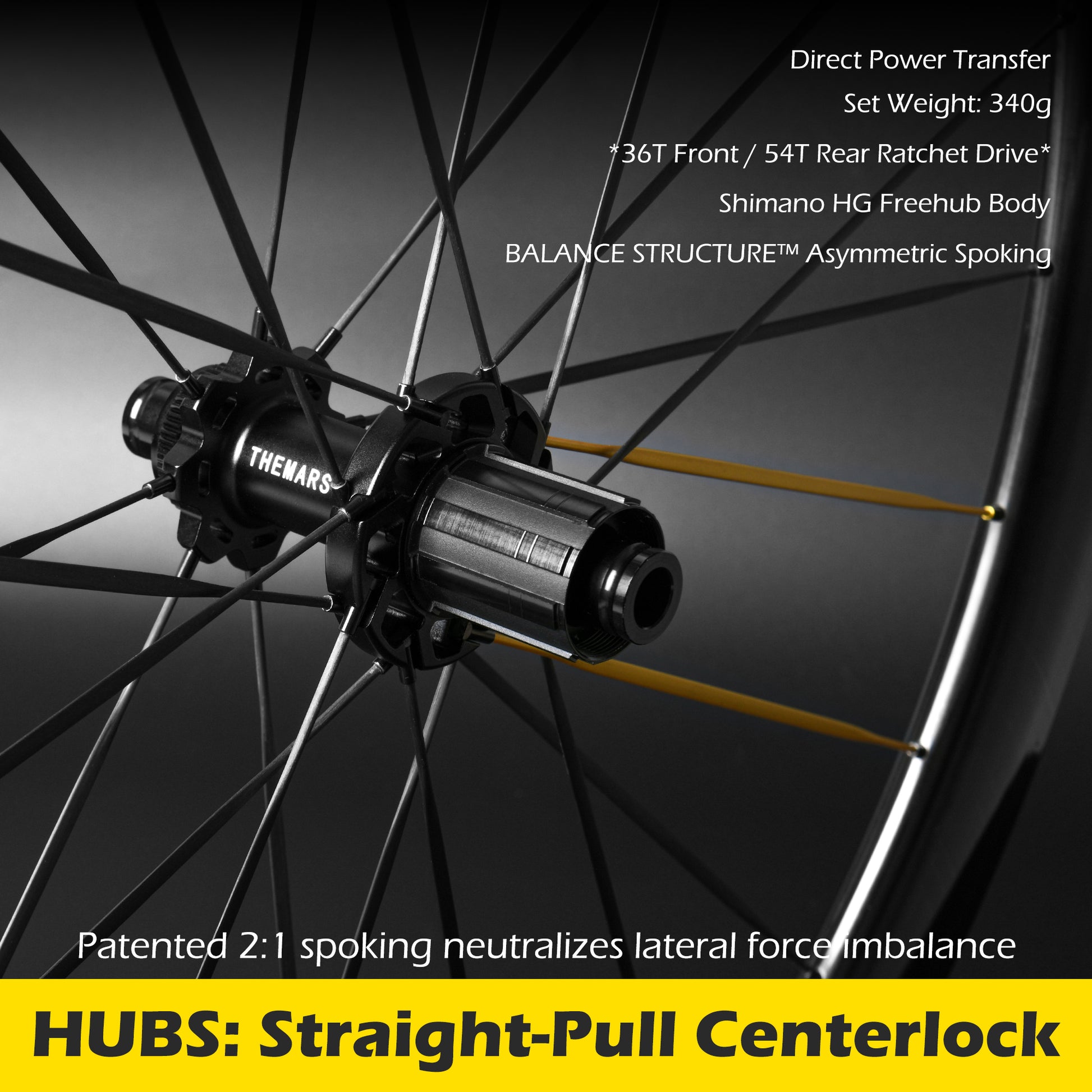 Centerlock straight-pull hubs: 36-tooth front / 54-tooth rear ratchet system, this wheelset delivers instantaneous power transfer with zero energy loss for maximized pedaling efficiency.