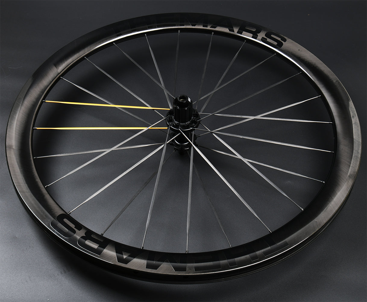 Product Feature: Carbon Fiber-Toray T700 T800, 45mm rim depth wheelset, HG-compatible freehub body.